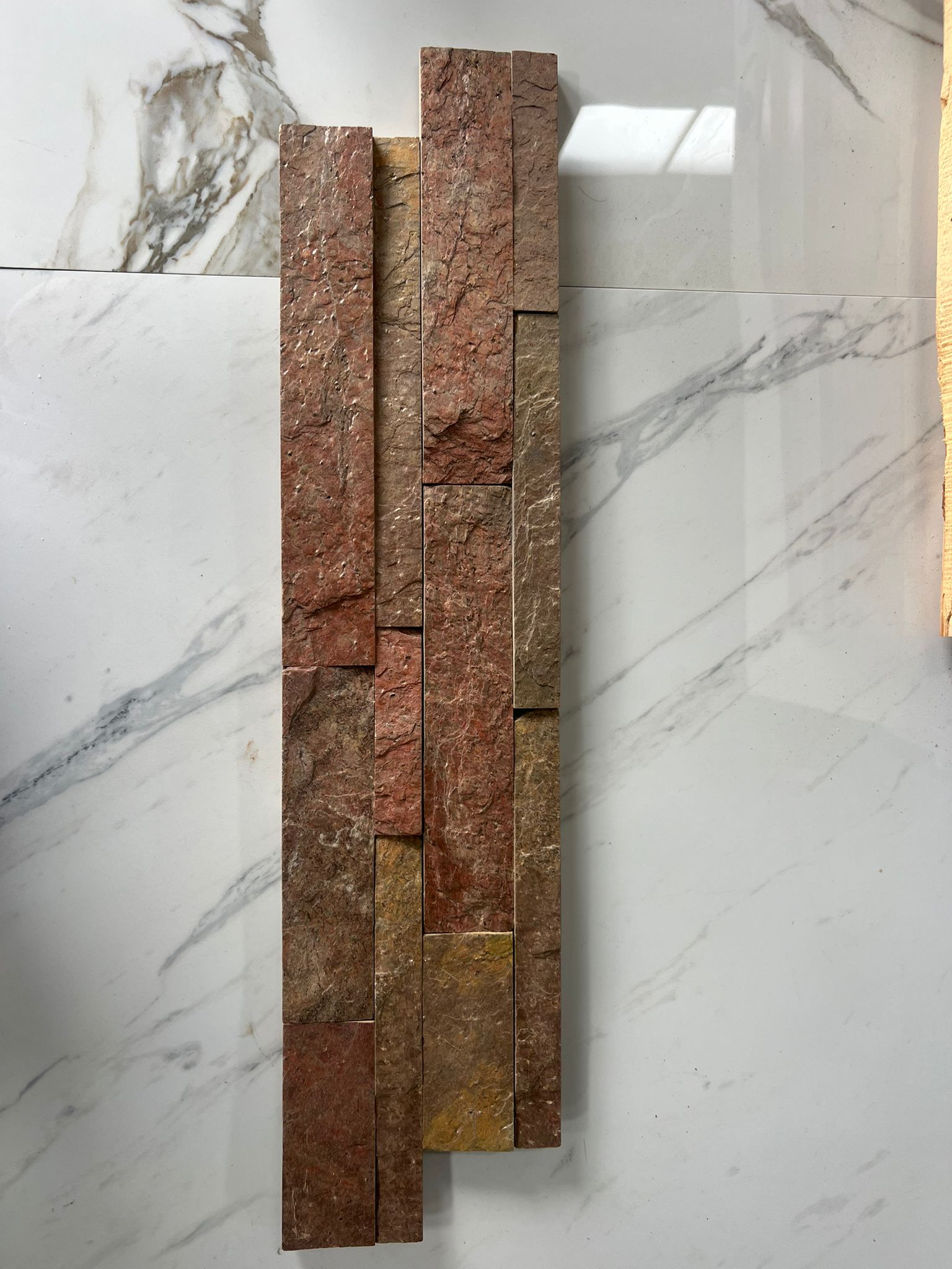 - Acabado tipo metal oxidado con matices cobrizos y rojizos